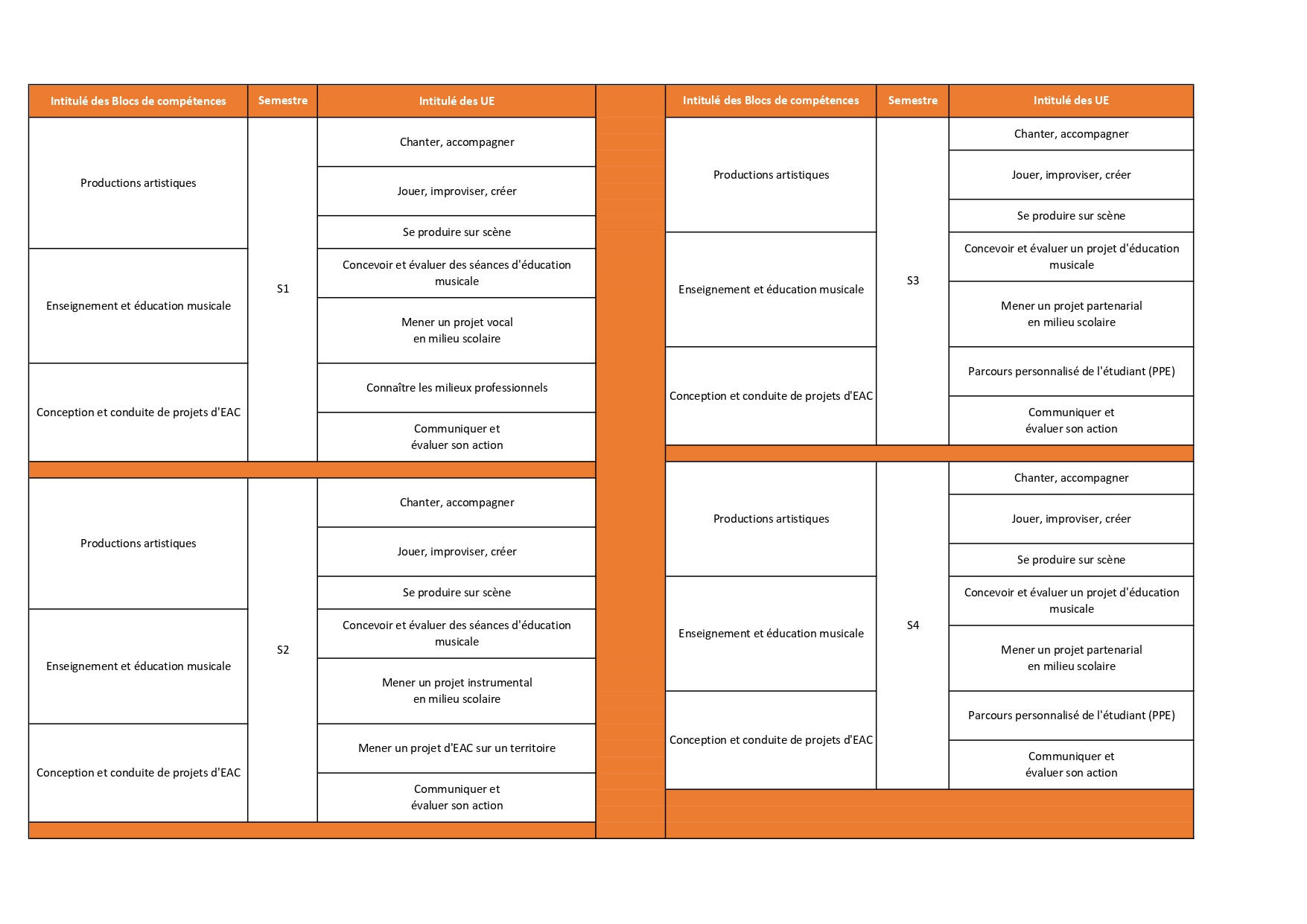 - Chaque semestre possède une « couleur » particulière et s’inscrit dans une progression où l’étudiant gagne progressivement en maîtrise et en autonomie.