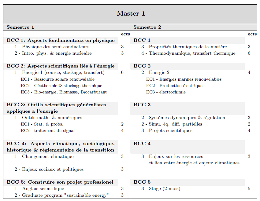 - Énergie 1 : sources, stockage, transfert (6 ECTS)