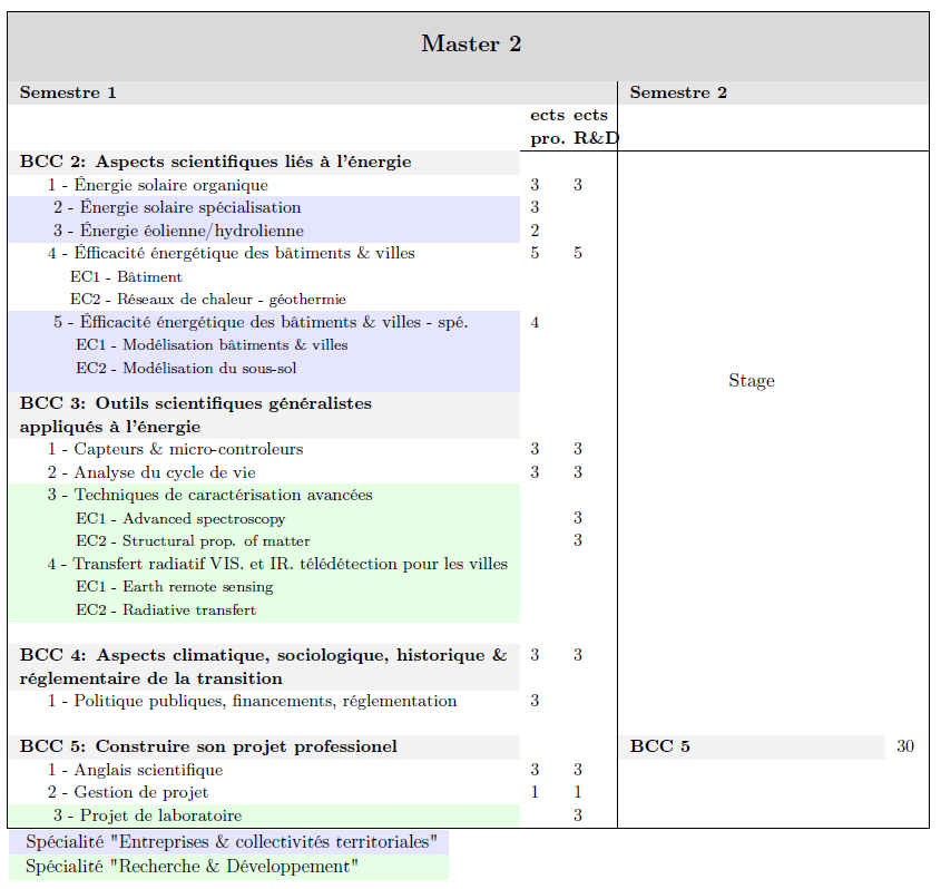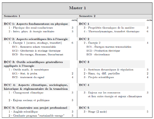 Le master Énergie s’organise autour de cinq blocs de connaissances et de compétences (BCC) :