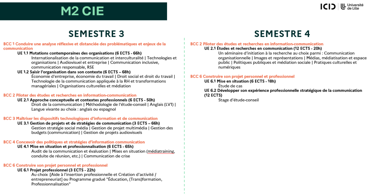 Entrée en M2 CIE : déposez votre candidature sur la plateforme Ecandidat de l'Université de Lille : https://www.univ-lille.fr/formation/candidater-sinscrire/ecandidat