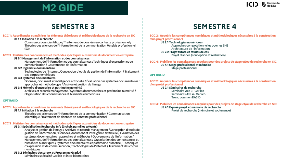 Le Master ID parcours GIDE appartient à la fois à un domaine universitaire existant dans le reste du monde (les sciences de l’information) et à un champ professionnel.