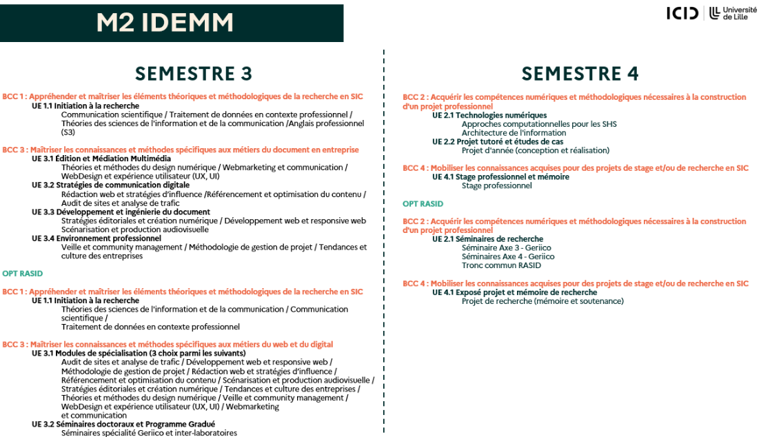 • Des enseignements liés aux recherches du laboratoire GERiiCO https: //geriico.univ-lille.fr et en lien constant avec le secteur professionnel : stages, interventions de professionnels, formation des salariés, projets tuteurés pour le compte d’entreprises ou d’organisations, etc.